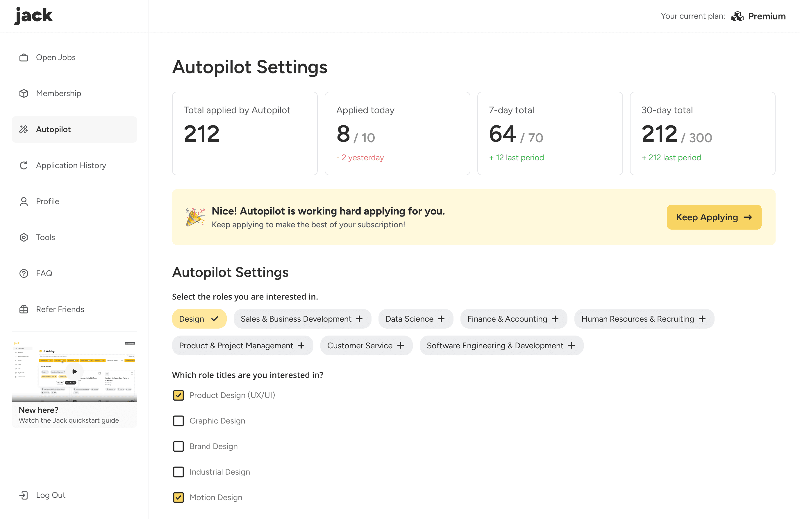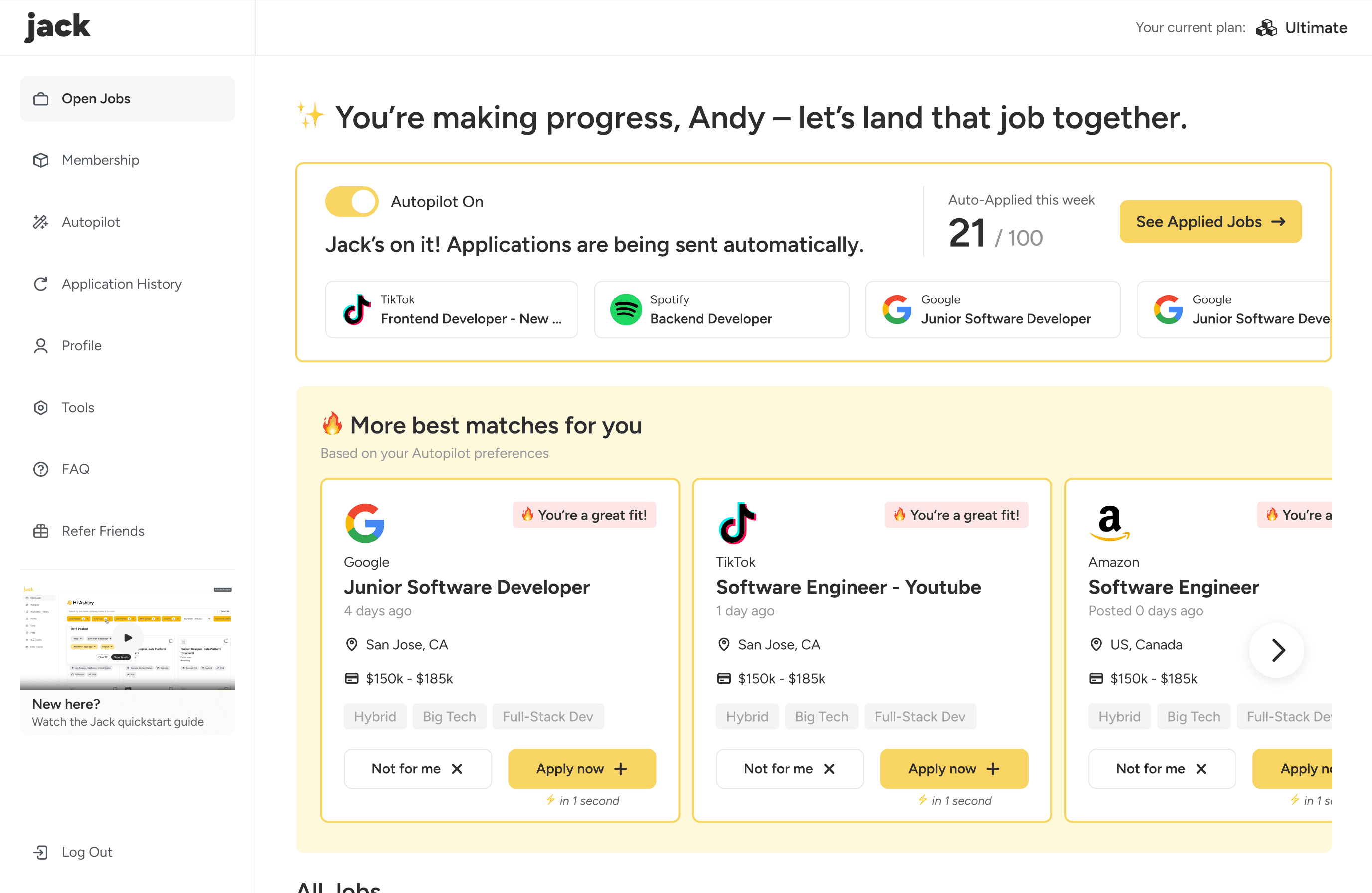Jack Applies, Inc. (Jack) is an automated job application platform that automatically applies to jobs on users’ behalf based on their preset preferences.